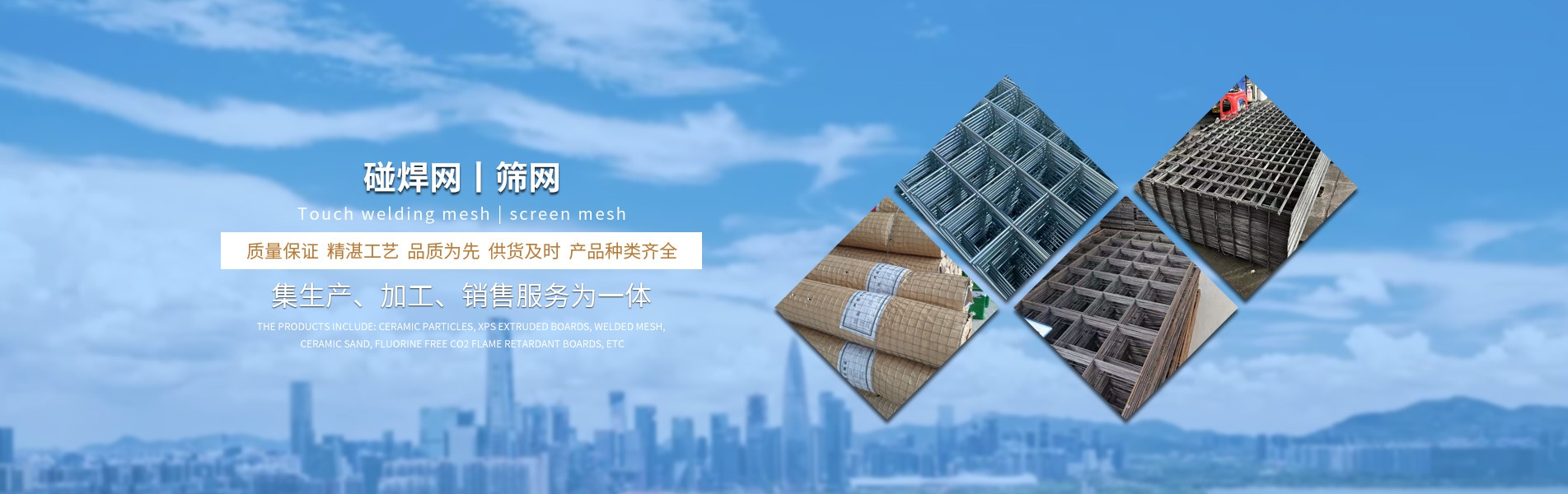 產(chǎn)品有:陶粒、XPS擠塑板、陶砂、無氟co2阻燃板、擠塑復(fù)合板。配送材料有:碰焊網(wǎng)、專用膠水、泡沫板、巖棉板、玻璃棉氈、珍珠巖、聚酯無紡布、纖維網(wǎng)格布等。
